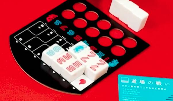 最初のプレイヤーの人は、個人ボードの上段「攻め」の列に自分の牌を1枚表向きで置きます。最初のスタートとなる牌は赤しか出せないようになっています。